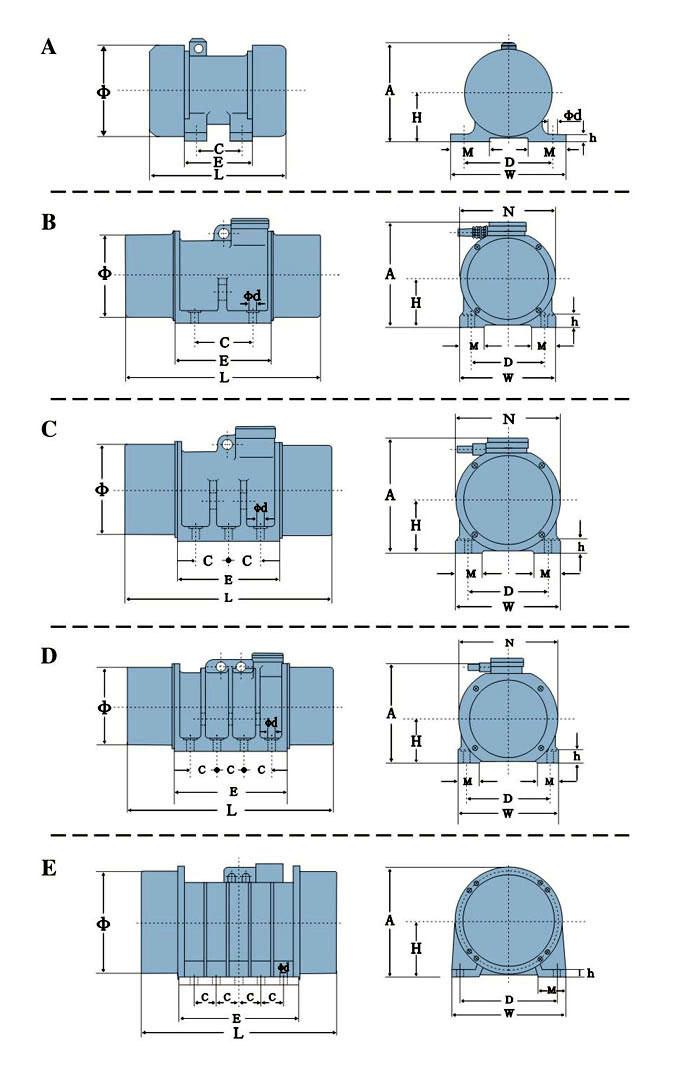 TZD振動(dòng)電機(jī)是在雙軸延伸的轉(zhuǎn)子軸兩端各安裝一組可調(diào)節(jié)偏心塊,利用偏心塊旋轉(zhuǎn)產(chǎn)生的離心力得到激振力。振動(dòng)電機(jī)的激振力大、能耗小、噪聲低、壽命長(zhǎng)。它使用于料倉(cāng)、料斗、溜槽的倉(cāng)壁振動(dòng),還是自同步直線振動(dòng)篩、振動(dòng)給料機(jī)、振動(dòng)輸送機(jī)等各種振動(dòng)機(jī)械的理想激振源,是電力、冶金、礦山、煤炭、建材、化工等行業(yè)的必備設(shè)備,有廣泛的應(yīng)用范圍。